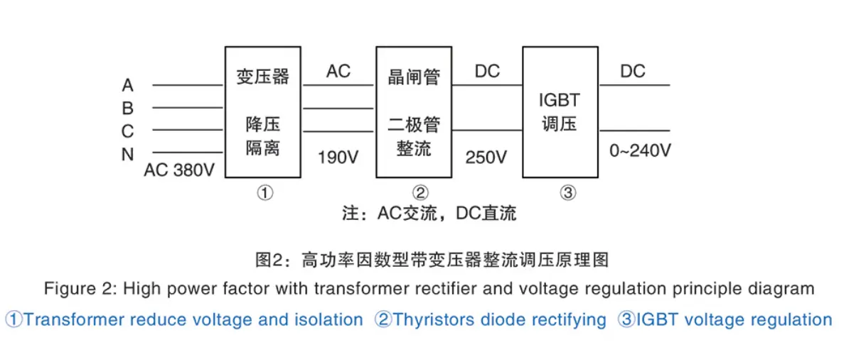 1. Diklasifikasikan berdasarkan penyearahan pengaturan tegangan: Thyristor (SCR) dapat digunakan untuk menyelesaikan penyearahan dan pengaturan tegangan secara simultan, atau pertama-tama gunakan penyearah dioda atau thyristor dan kemudian gunakan IGBT untuk mengatur tegangan. Gunakan IGBT mengatur tegangan untuk meningkatkan faktor peralatan. Dapat menghemat listrik dan lebih meningkatkan kualitas pengelasan.